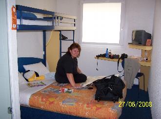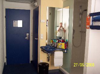 Das ist das kleine Hotelzimmerchen im "Etap-Hotel" in Graz. Mit Bett, Dusche, WC und Waschbecken. Ach ja, Klima und Fernseher waren auch drin. Klein aber sauber. Für eine Nacht reicht das völlig aus. Die Kinder teilen sich ein weiteres Zimmer, direkt nebenan.